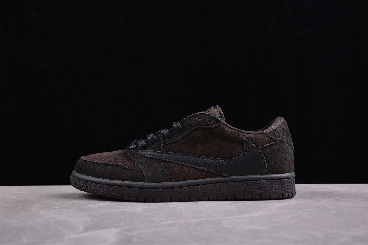 La Travis Scott x Air Jordan 1 Low OG “Velvet Brown” (DM7866-20211) revisite la silhouette iconique de l’AJ1 Low avec le célèbre Swoosh inversé, signature du rappeur texan.