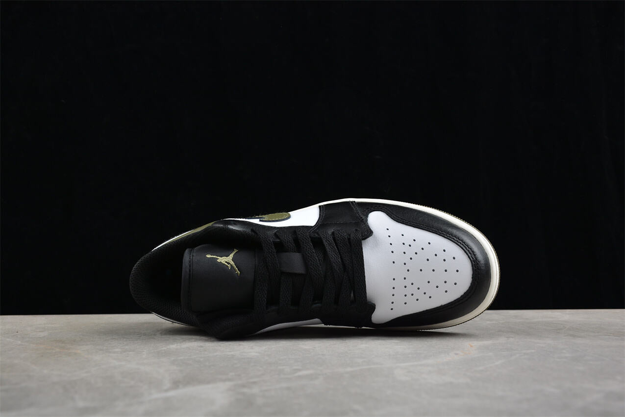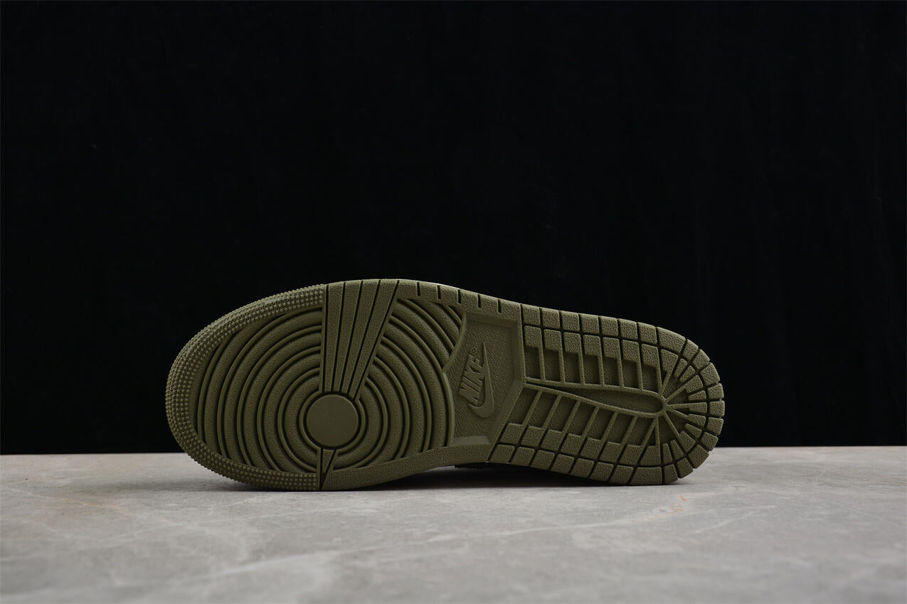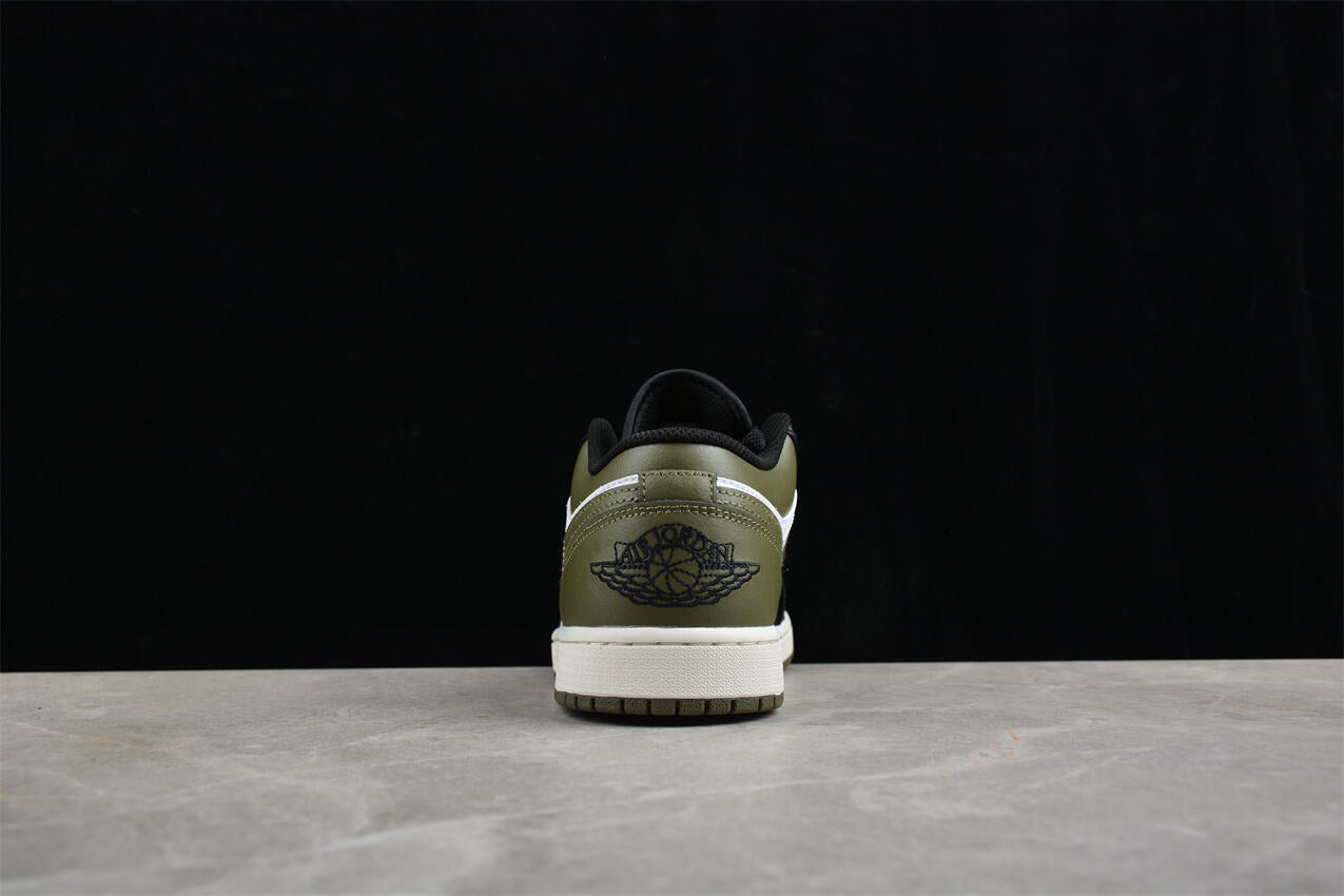 Sneaker basse rétro en coloris vert olive, noir et blanc, parfaite pour un style urbain tendance.