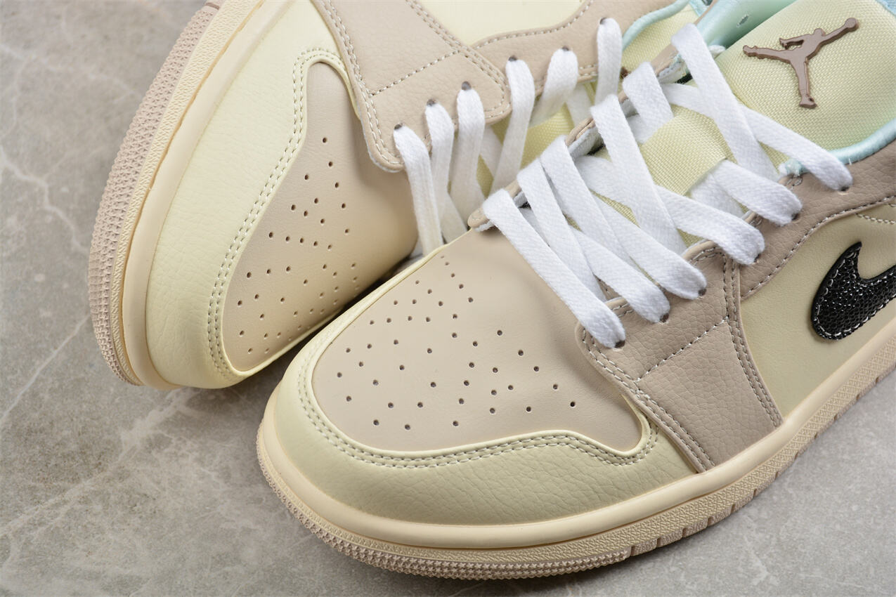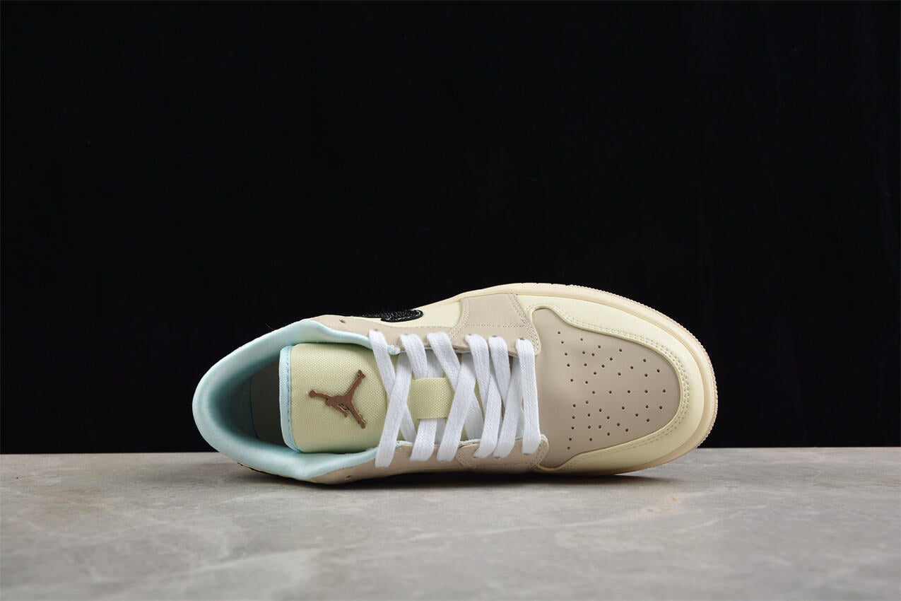Sneaker low rétro avec un coloris doux “sand/black détails logo métallisé sur la languette et textures crocodile sur la tige pour un style unique.