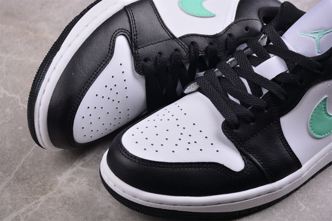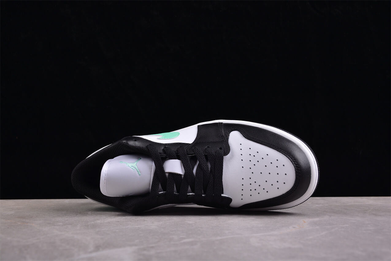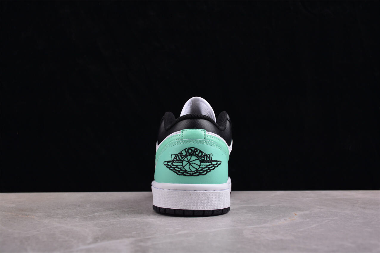 La Air Jordan 1 Low Mint Green Black affiche une combinaison fraîche et moderne avec son vert menthe contrasté par le noir profond. Un modèle parfait pour un look streetwear unique et tendance.