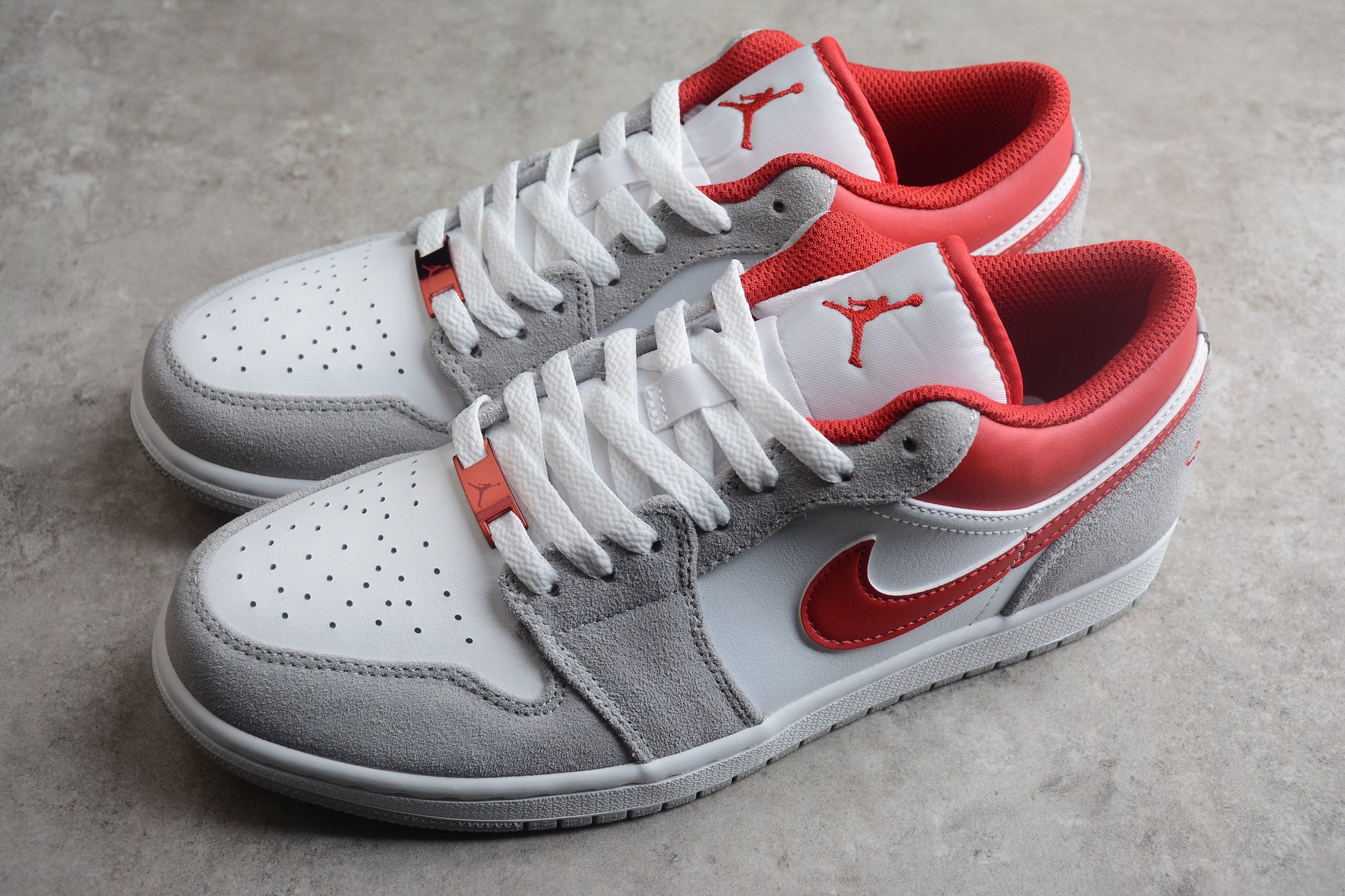La Air Jordan 1 Low “Grey White Red” (DC6991-016) est une version premium qui se distingue par ses finitions et son confort.